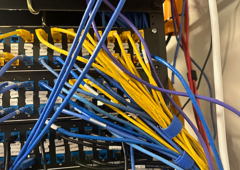 Full cabling (Cat6, coax, fiber), AV racks, surge protection, and sales of leading brands.